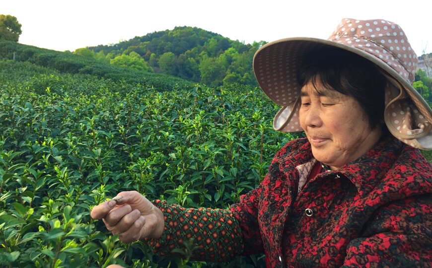 I only pick up the tea leaves in Spring. I will get up at 7am and go out to pick up the tea leaves. I need to be careful because the bud and leaves are very tender. I will stop picking at noon. Then I will send the tea leaves to the factory. During the busy season, I also will help to work in the factory to do some primary production.